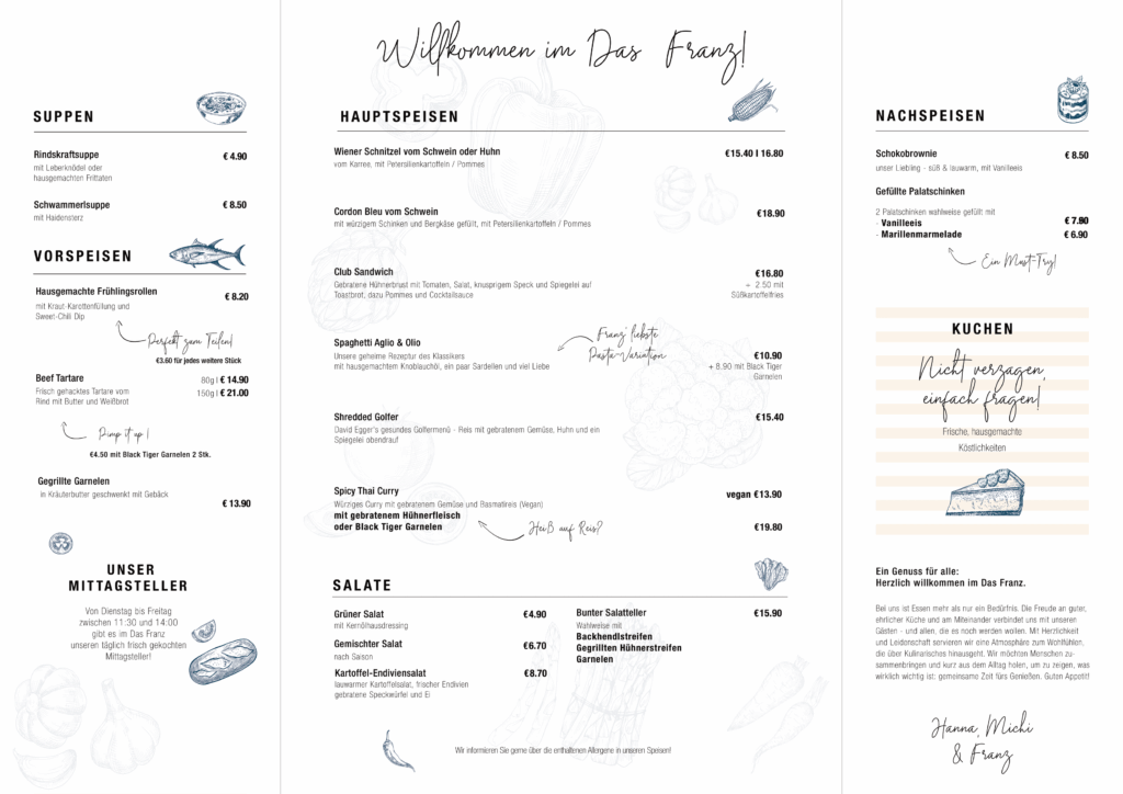 Bei uns ist Essen mehr als nur ein Bedürfnis. Die Freude an guter, ehrlicher Küche und am Miteinander verbindet uns mit unseren Gästen - und allen, die es noch werden wollen. Mit Herzlichkeit und Leidenschaft servieren wir eine Atmosphäse zum Wohlfühlen, die über Kulinarisches hinausgeht. Wir möchten Menschen zusammenbringen und kurz aus dem Alltag holen, um zu zeigen, was wirklich wichtig ist:
